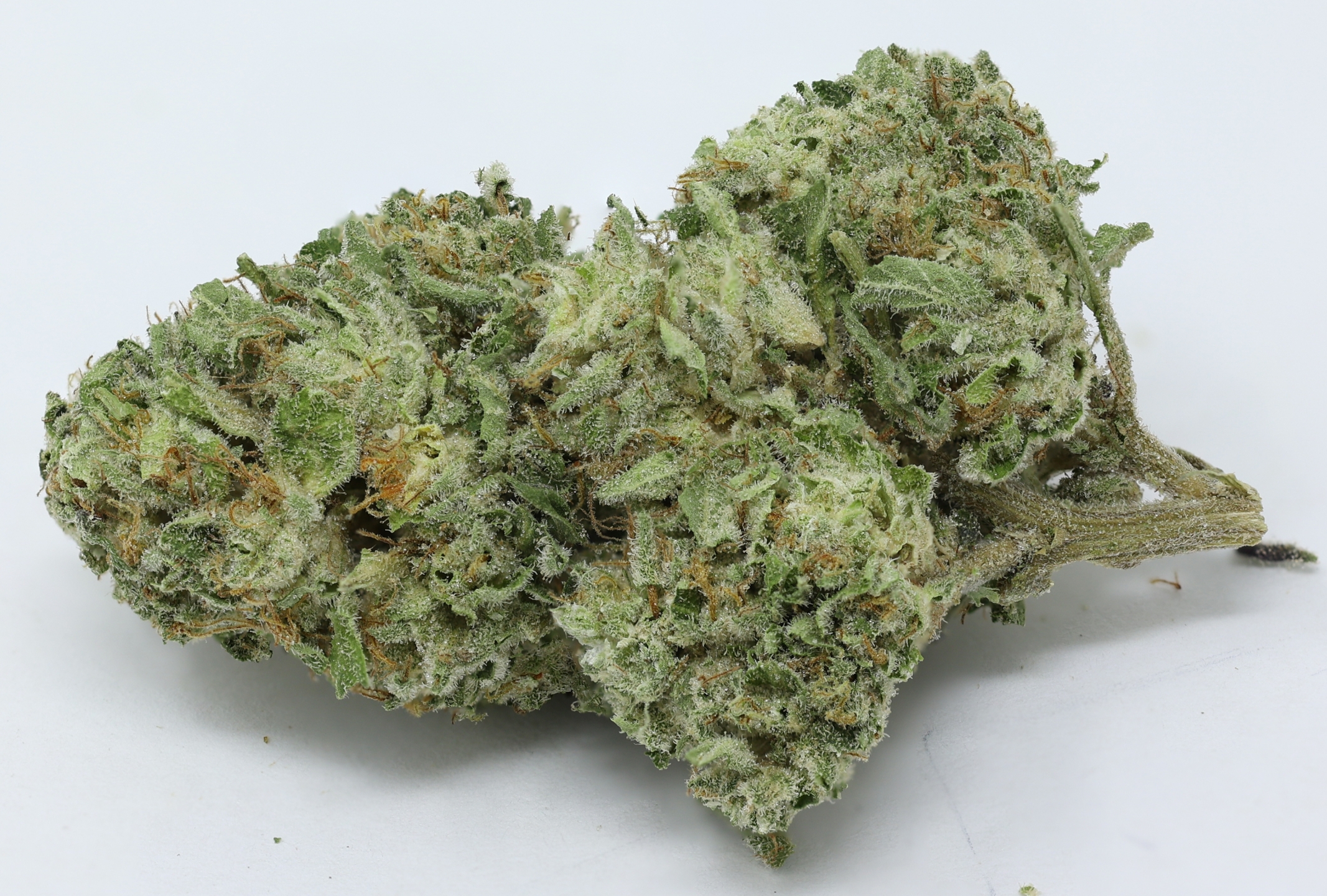 Mendo Lavender is a hard to find strain, it's bud brings on the potency, with a THC level that bottoms out at about 19-20% on average and dazzling full bodied effects. Mendo Lavender comes on pretty quickly after your first few hits, filling your mind and body with a happy tingly effect. This tingle quickly turns into a full on buzz, washing over you physically and pulling you down into a heavy couch-locked body high. As you lose your physical form to happy sedation, your mind will lift into a state of hazy euphoria that leaves you unable to focus and pretty sleepy at times. Thanks to these nighttime effects and its high THC level, Mendo Lavender is said to be perfect for treating conditions such as chronic pain, inflammation, muscle spasms or cramps, and chronic stress. This bud has a sweet vanilla caramel candy flavor and a fresh earthy aroma to match. Mendo Lavender buds have lumpy round minty green nugs with furry orange hairs and a thick frosty coating of tiny bright white crystal trichomes.